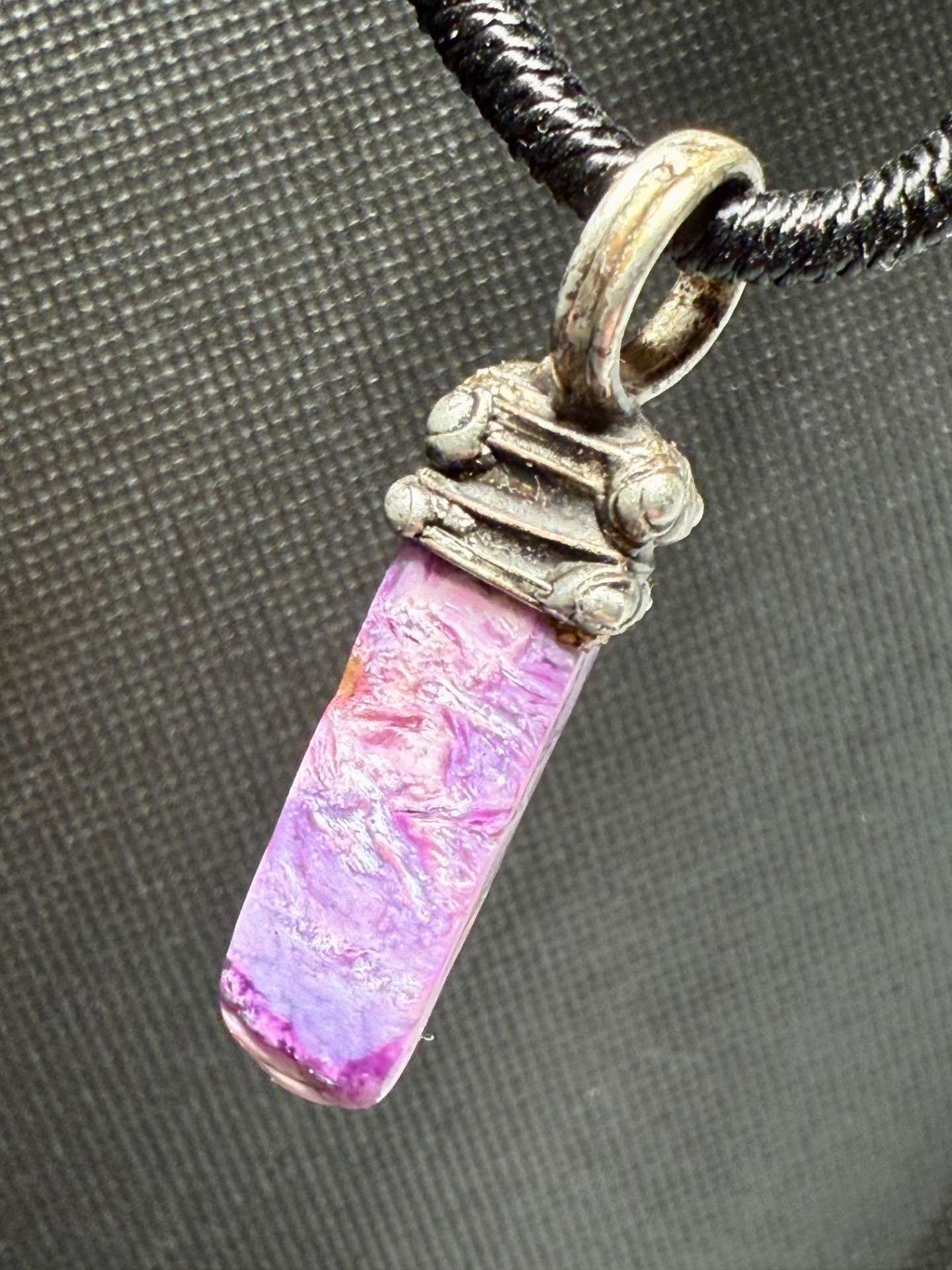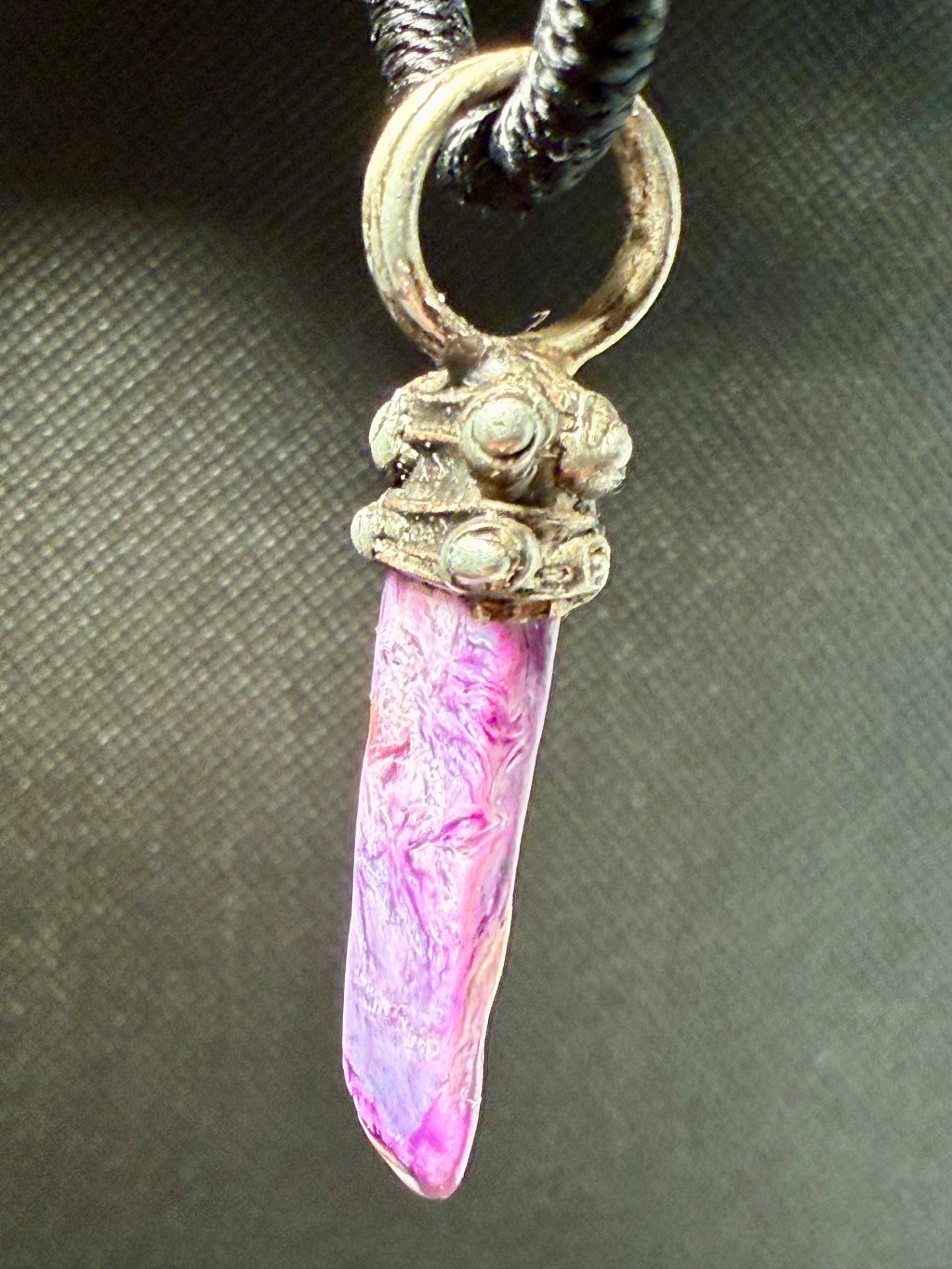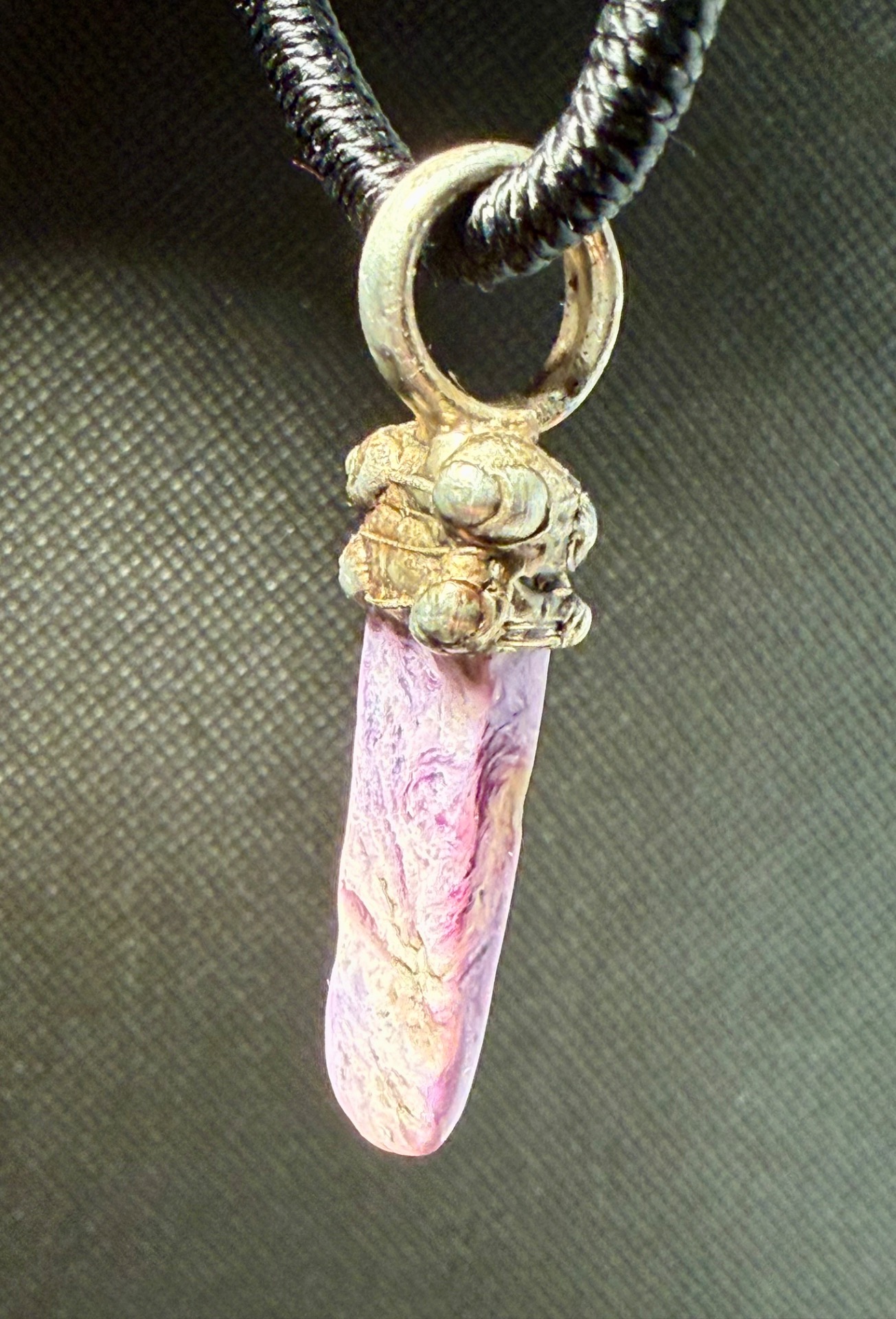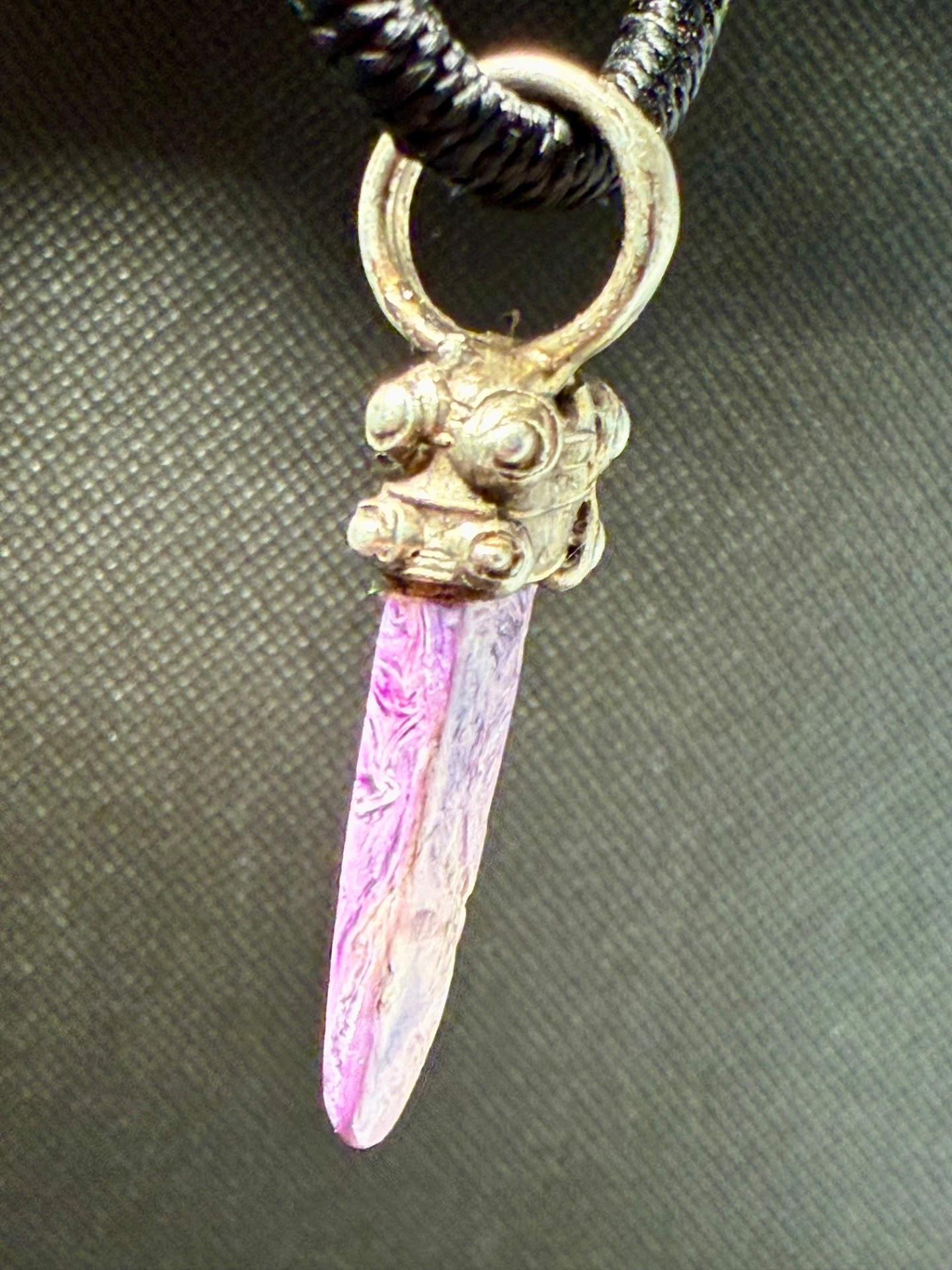 Tip: Fialová barva čaroitu symbolizuje spiritualitu a šlechtický klid. Amulet se skvěle hodí k bílému, šedému i černému oblečení, které podtrhne jeho královský vzhled.