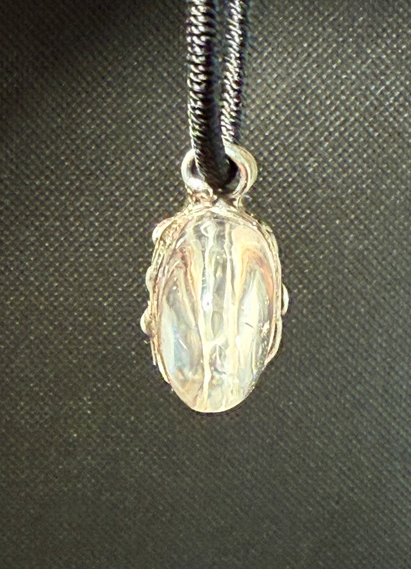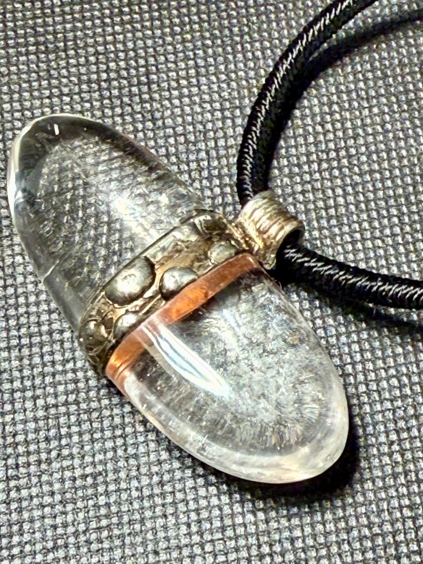• Umělecké cínování: Krystal je bezpečně a esteticky uchycen technikou měkého pájení (cínování). Lůžko zdobené jemnými kuličkami a patinou dodává šperku nádech historie a jedinečnosti.