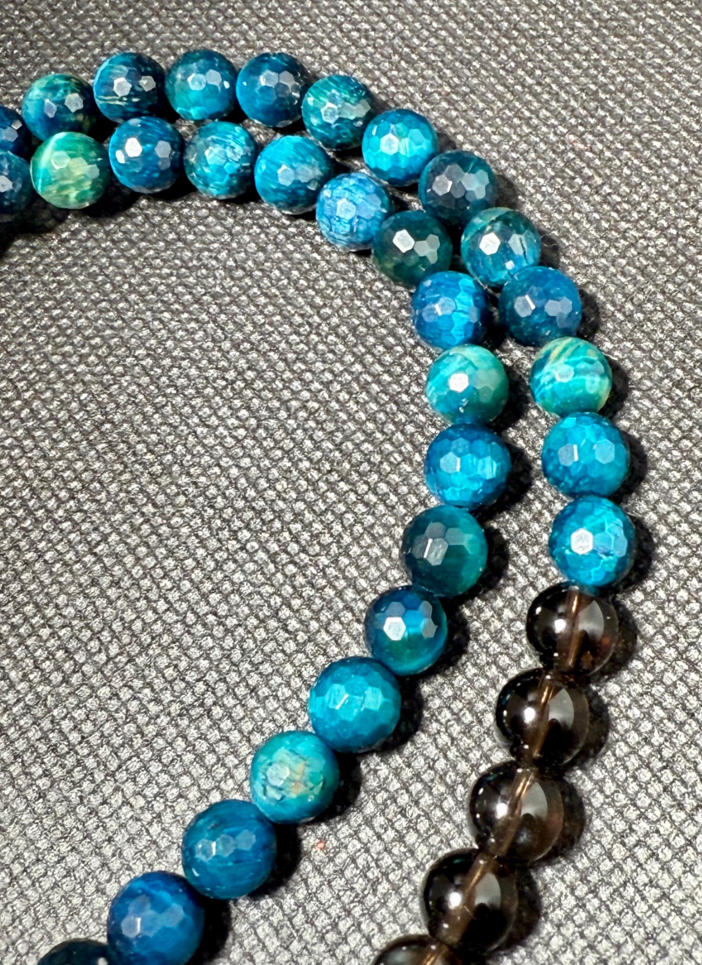 • Precizní zpracování: Náhrdelník je tvořen kombinací hladkých kuliček záhnědy a broušených (facetovaných) kuliček tygřího oka, které při každém pohybu odrážejí světlo a dodávají šperku luxusní vzhled.