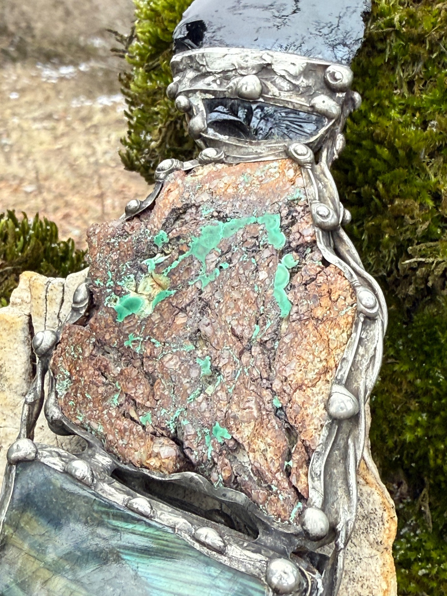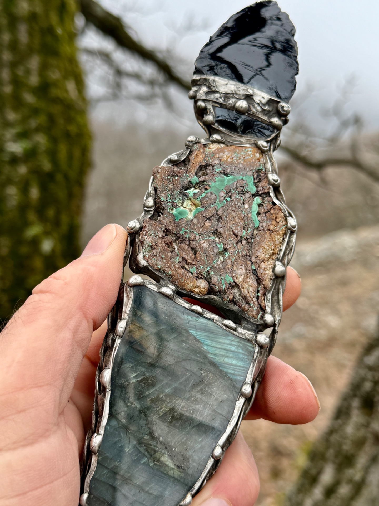 • Kameny: Černý obsidián, slovenský malachit, madagaskarský labradorit.