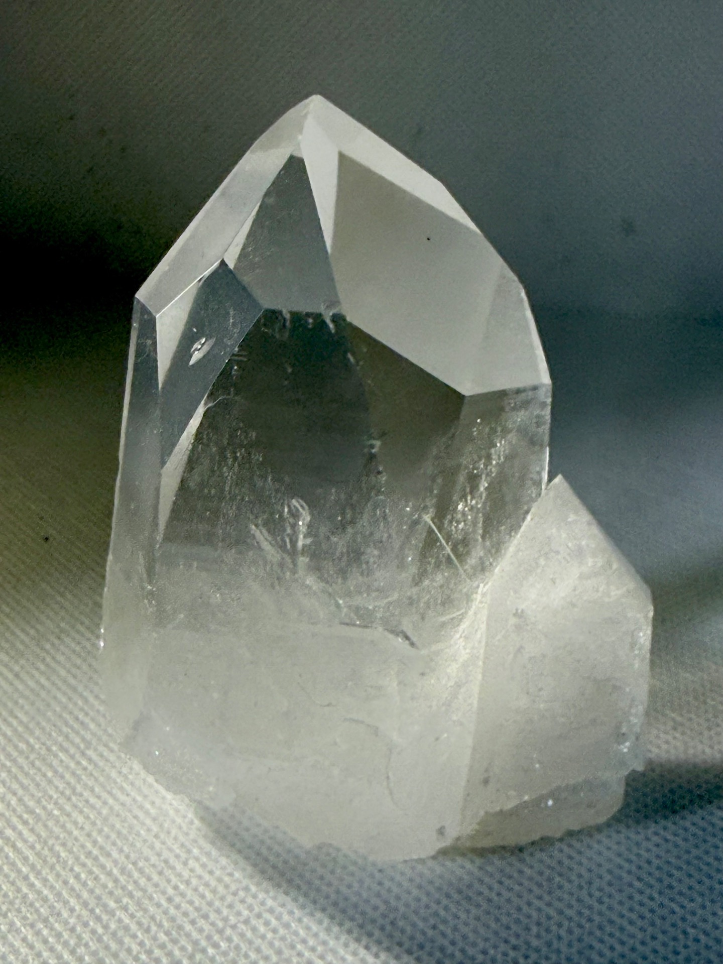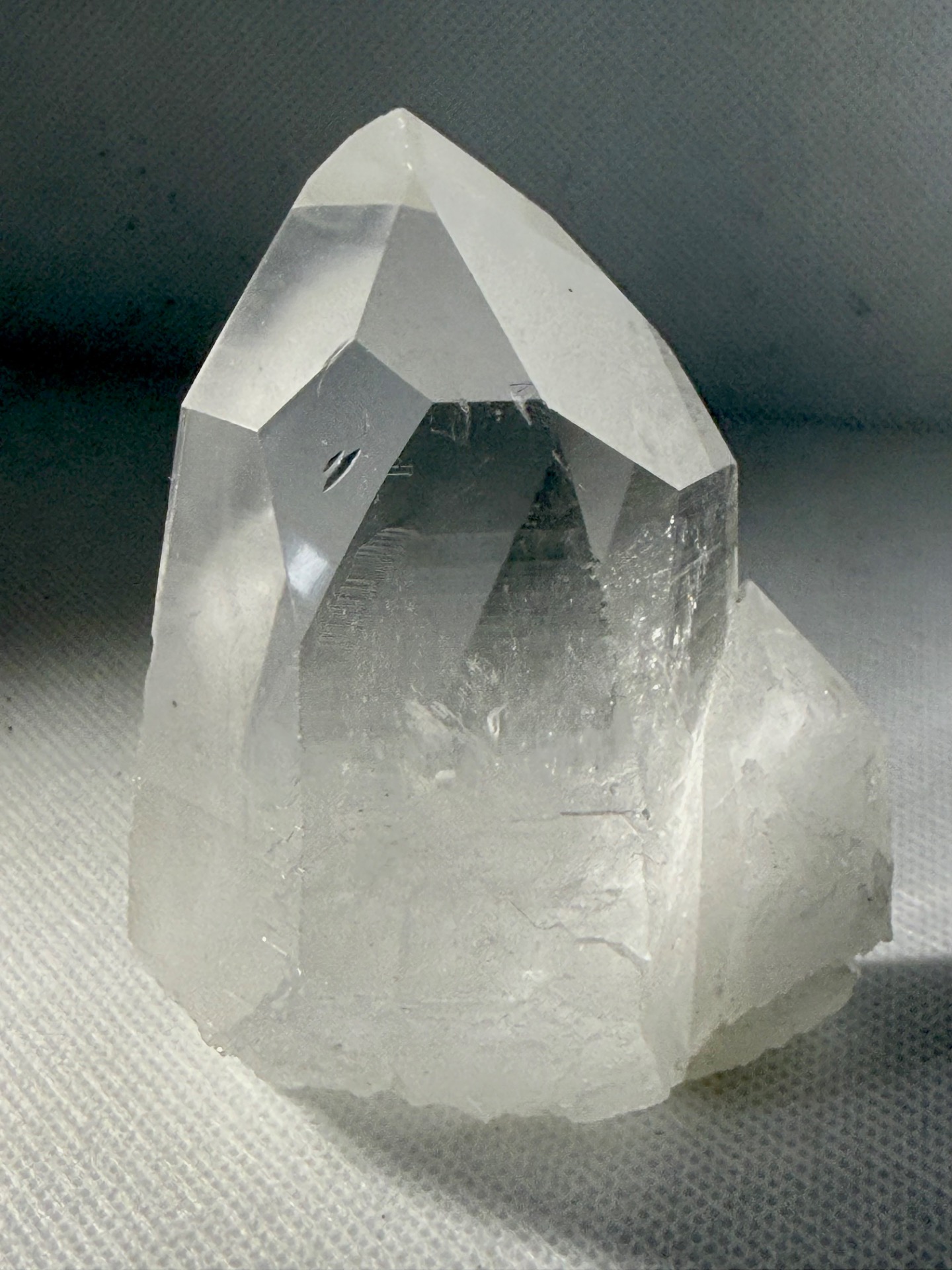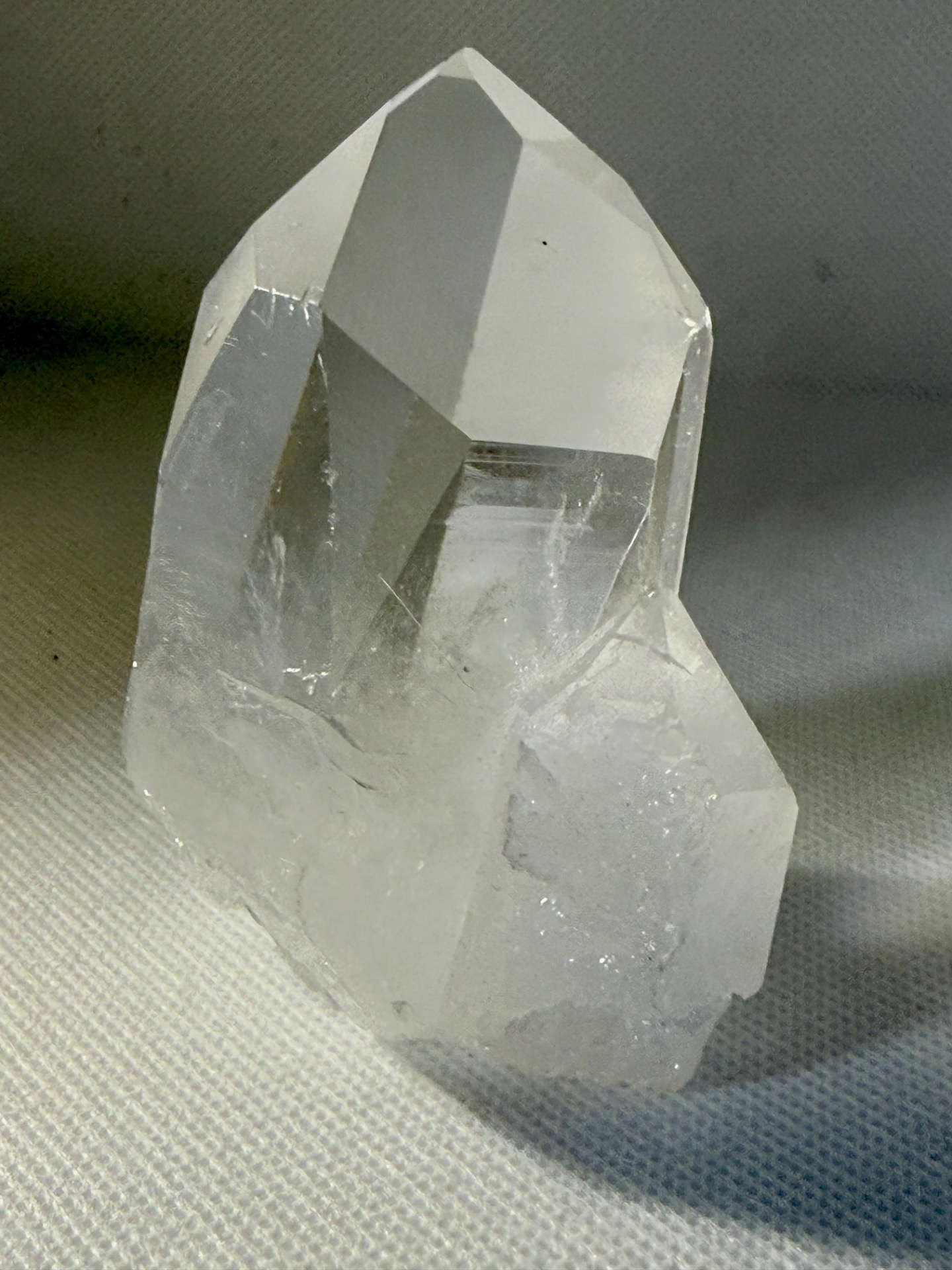 Tento výběrový křišťál z brazilských nalezišť vyniká svou mimořádnou optickou čistotou. Jedná se o přirozené spojení dvou krystalů, které spolu srostly v jeden harmonický celek. Aby vynikla jeho vnitřní architektura, byl kámen jemně upraven pro lepší náhled, což vám umožňuje pozorovat lom světla a naprostou absenci nečistot uvnitř jeho struktury.