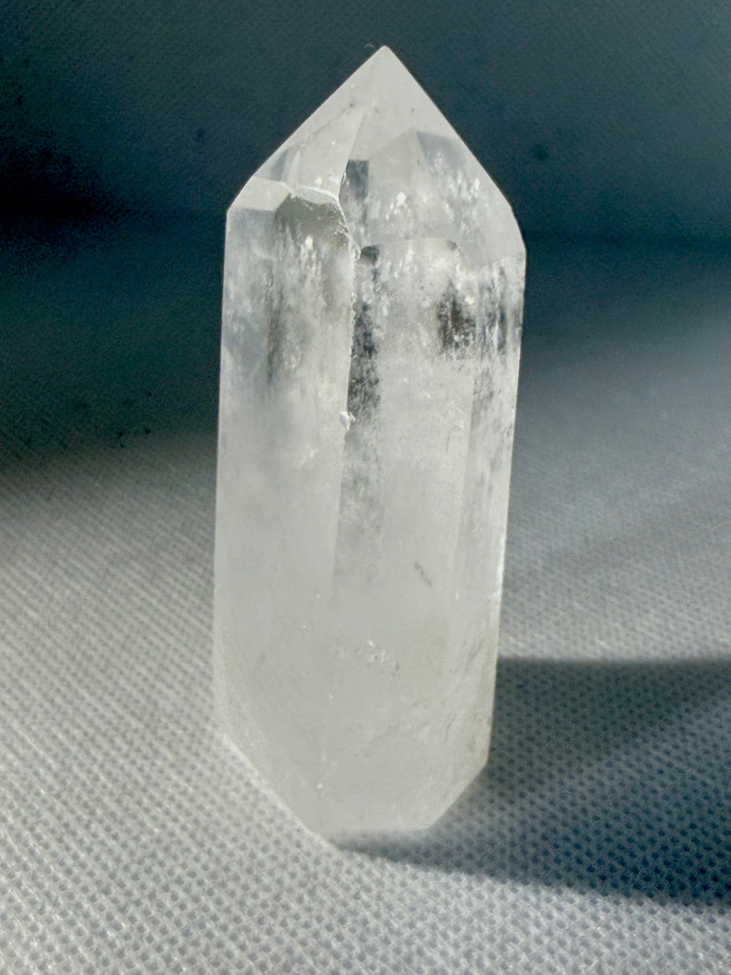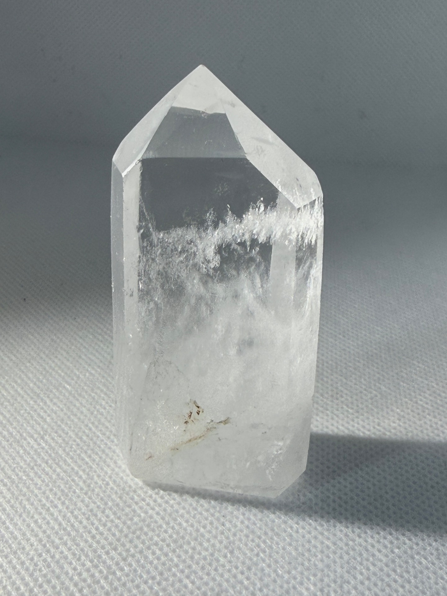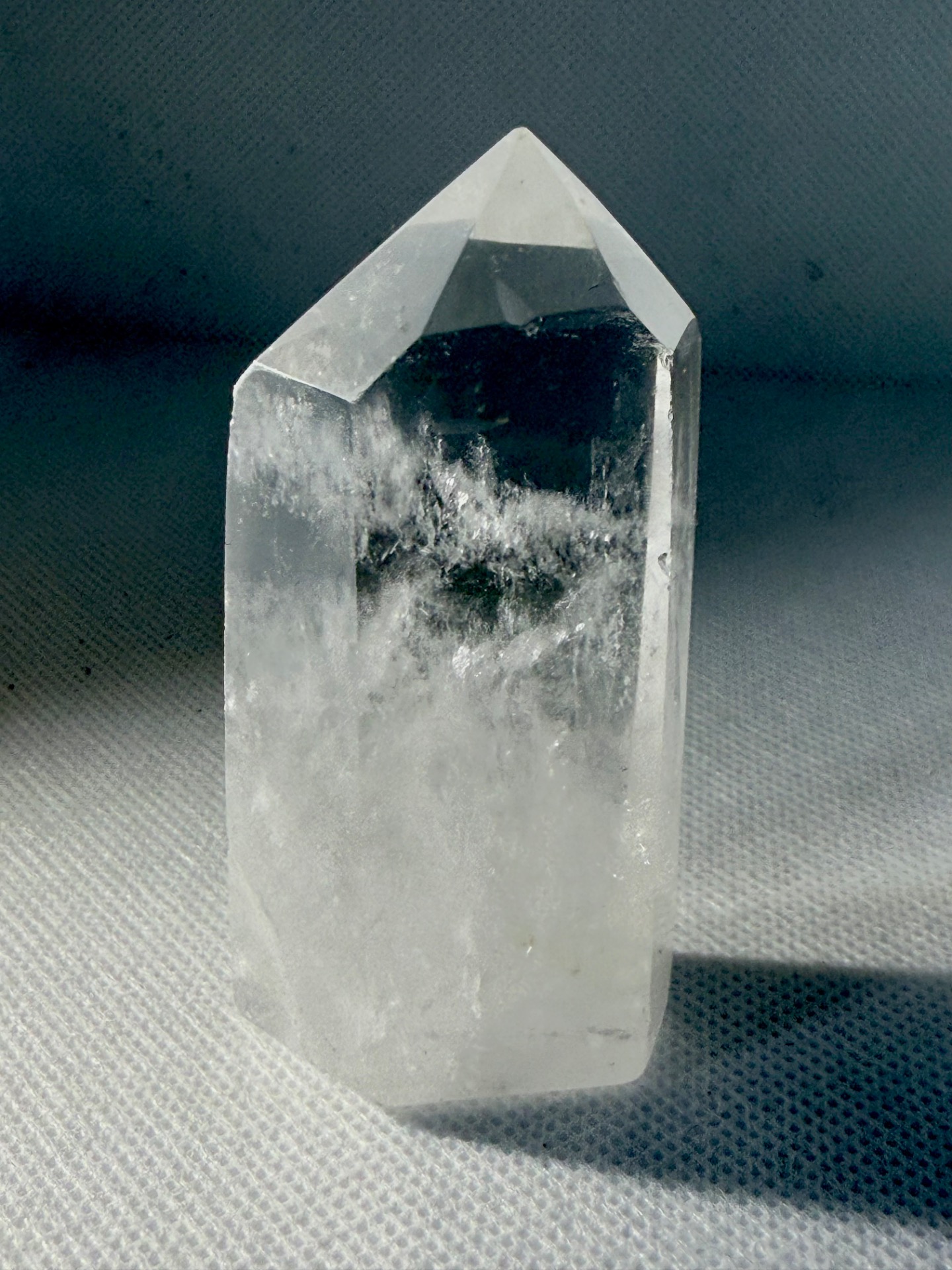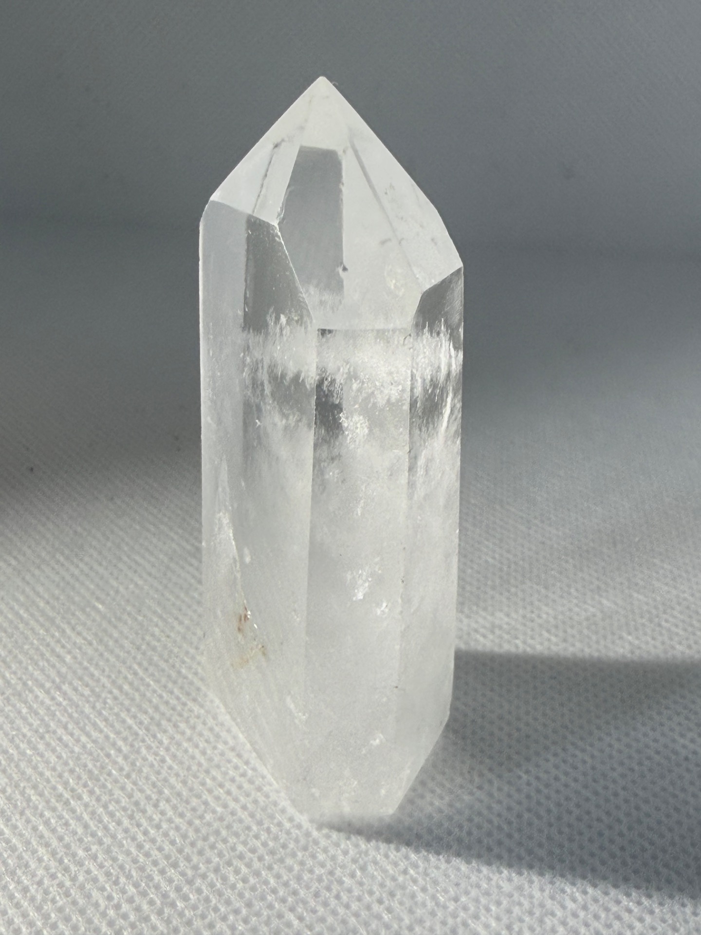 Tento upravený generátor (krystal se šesti stěnami sbíhajícími se do špičky) byl pečlivě vyleštěn, aby odhalil svou vnitřní čistotu bez jakýchkoli bariér. S vahou 84 g a štíhlým, elegantním profilem padne dokonale do ruky i do interiéru. Generátory jsou vyhledávány pro svou schopnost akumulovat energii a silně ji vyzařovat skrze svůj vrchol.