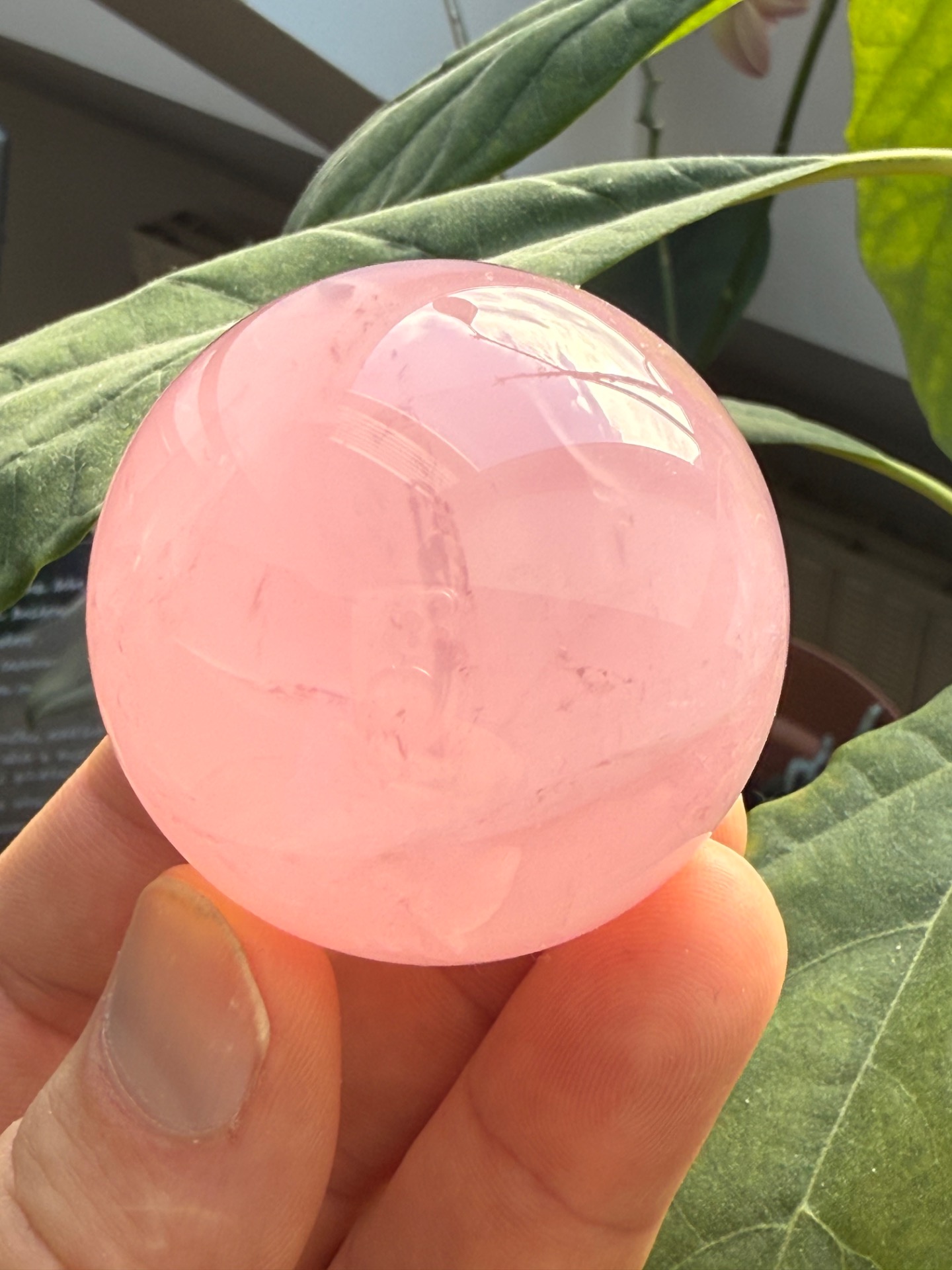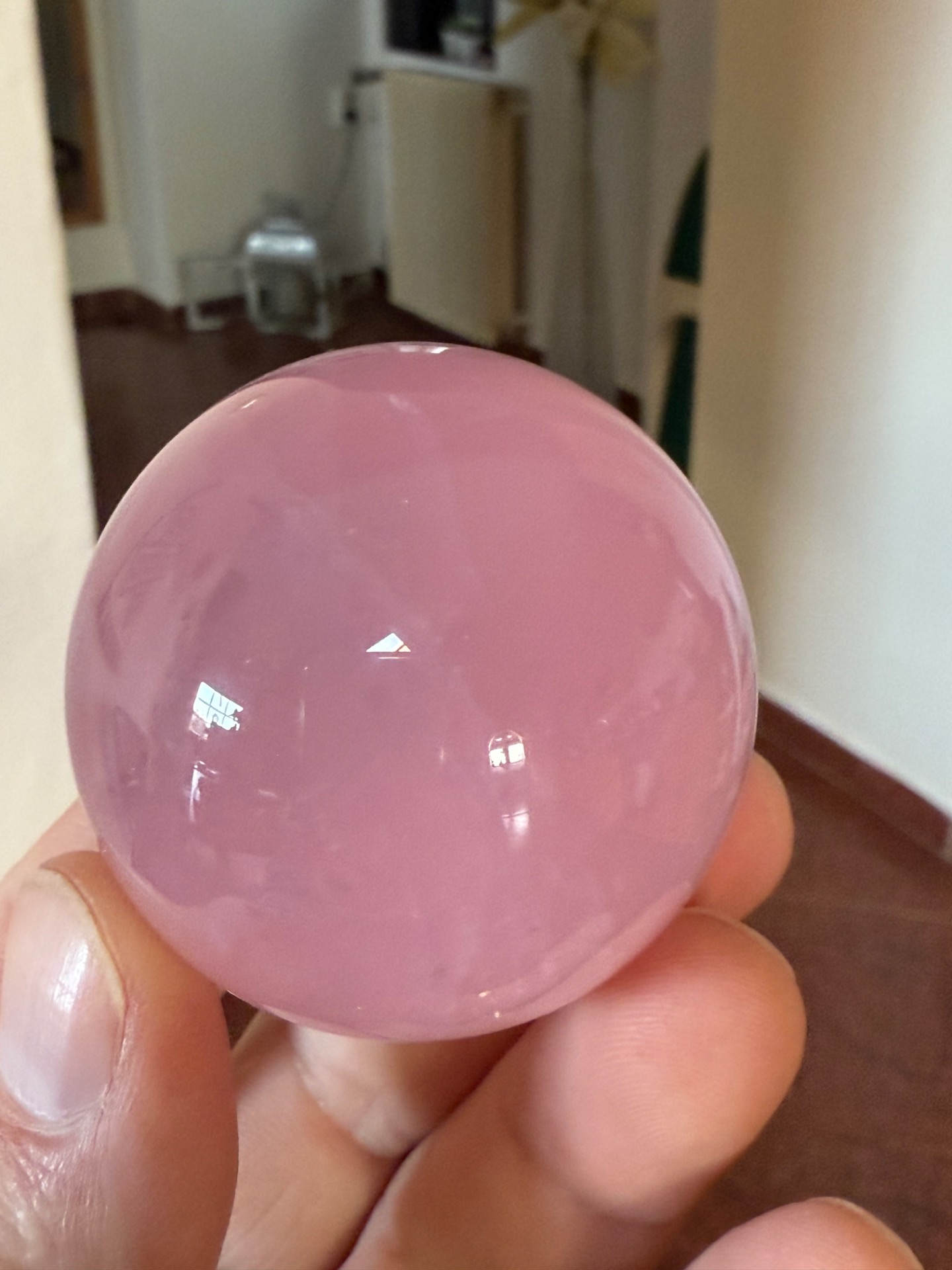 Představujeme vám exkluzivní kouli z růženínu, která vyniká svou sytou, zdravě růžovou barvou. Tento kus o váze 204 g a průměru 55 mm není jen estetickým doplňkem, ale nese v sobě vzácný fenomén asterismu. Na přímém slunečním nebo bodovém světle se na jejím povrchu rozzáří nádherná světelná hvězda.
